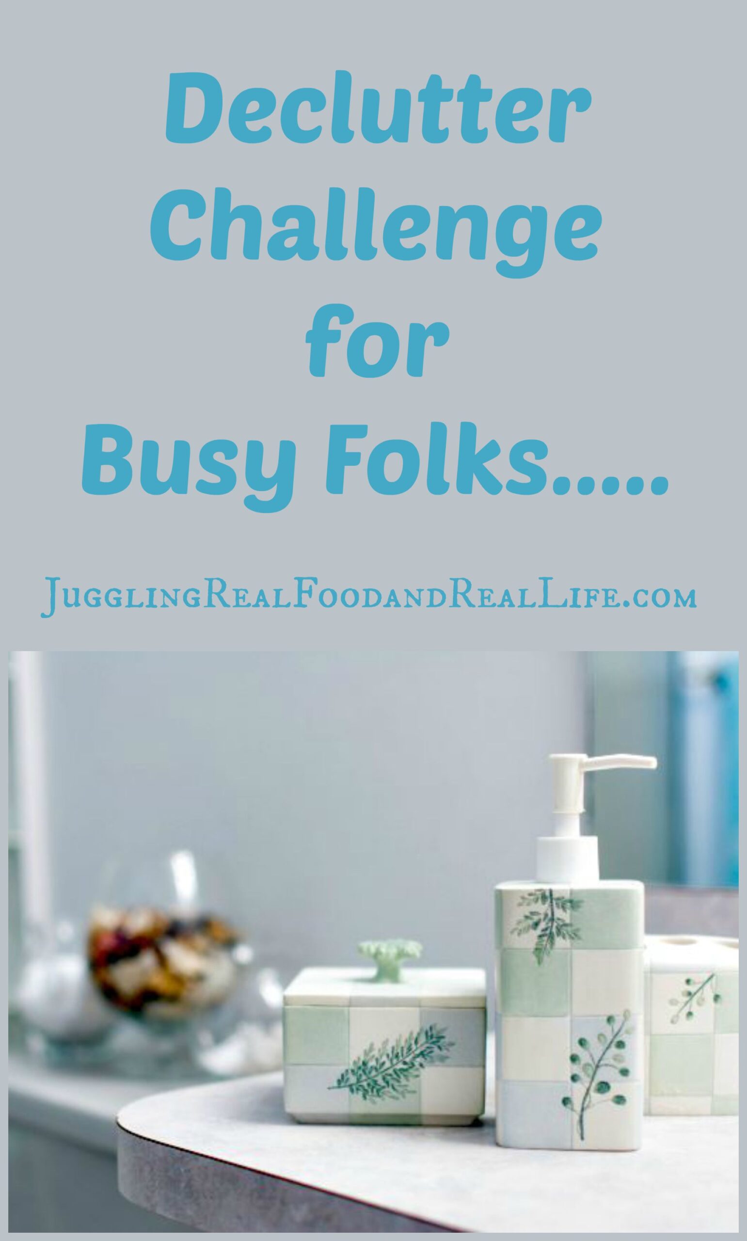 Time for another Declutter Challenge. Are you tired of the clutter weighing your down? I know I am! We started the Declutter Challenge with the master bedroom and although I’m still not done with that room, I decided to move to another room that I am motivated to declutter. Holy cow is my master bedroom cluttered! I haven’t given up on decluttering the master, but I was really excited to get start on the bathroom for some reason. Weird, huh? Maybe not……….I do spend a lot of time in the bathroom. I really don’t understand why this relatively low maintenance girl has to spend so much time in the bathroom when my husband only takes about 10 minutes to get ready each day.
